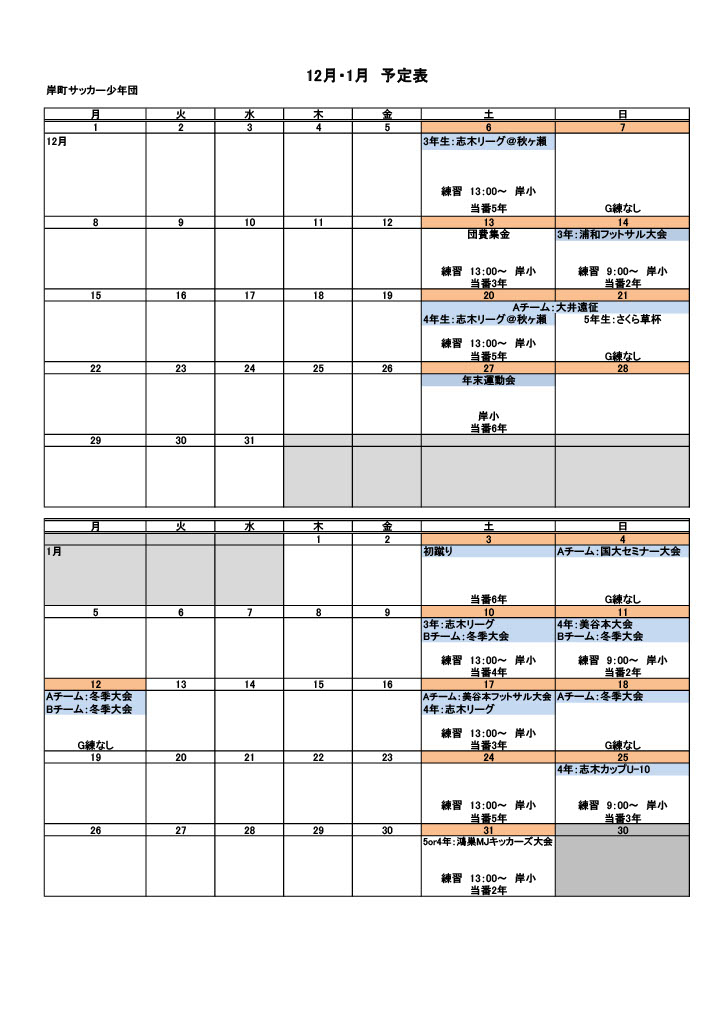 岸町サッカー少年団では年間を通して様々な活動をしています。
