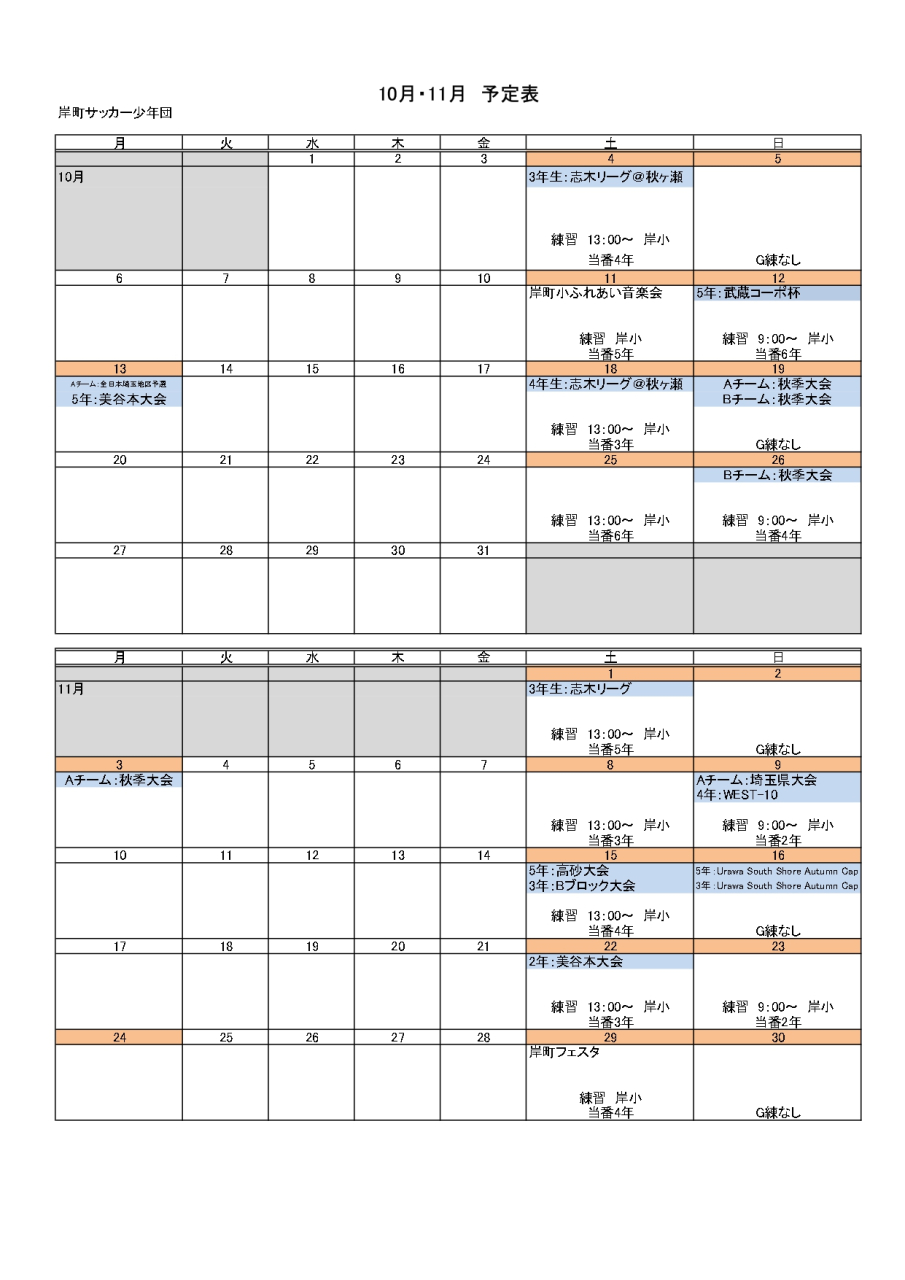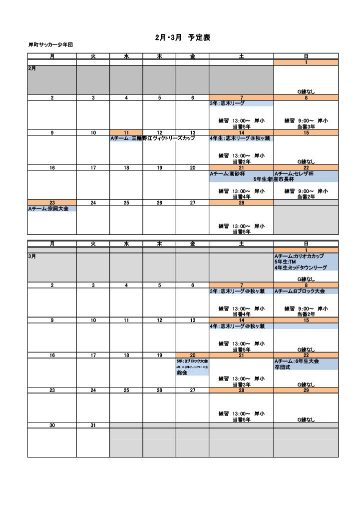 岸町サッカー少年団では年間を通して様々な活動をしています。