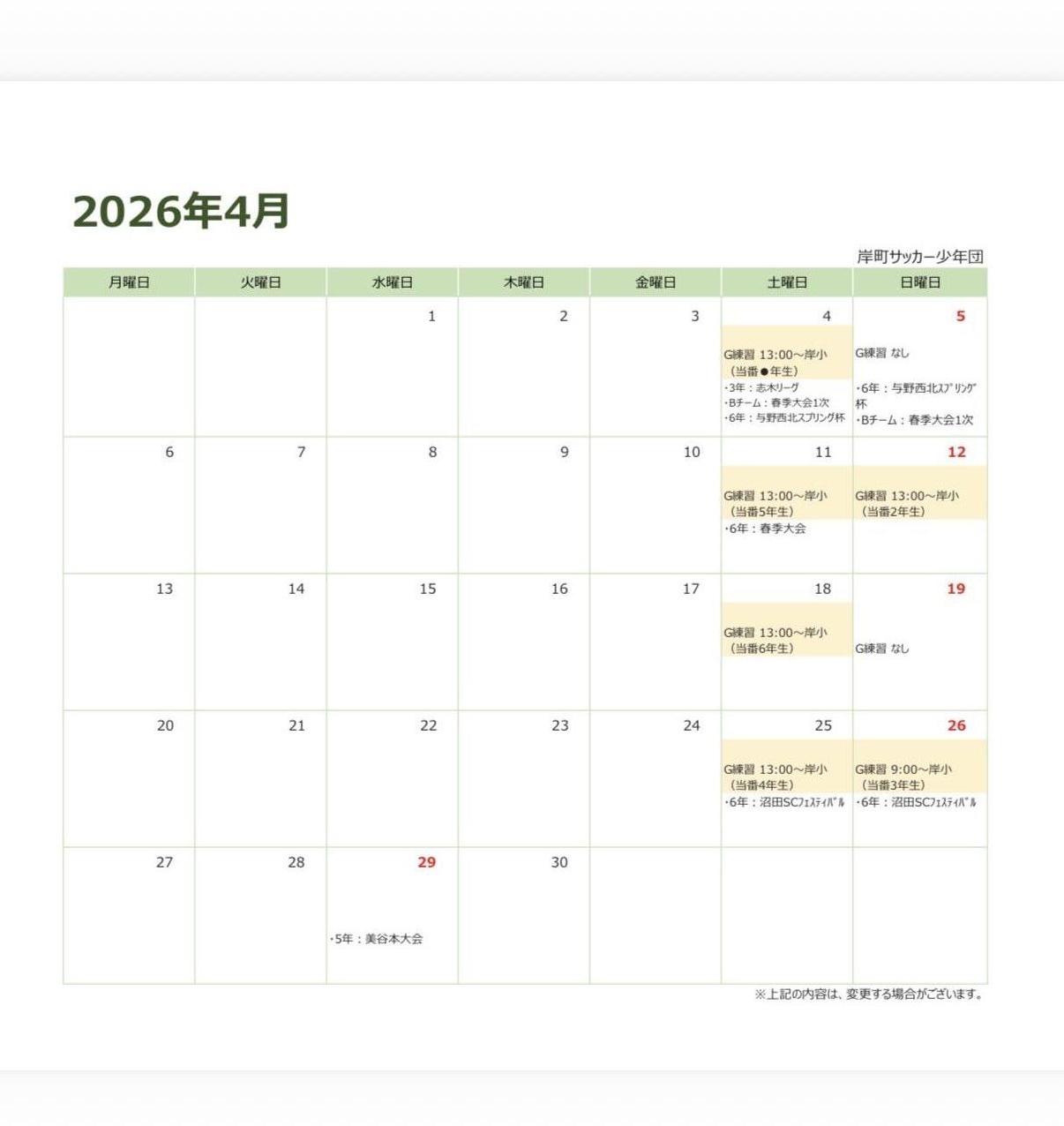 岸町サッカー少年団では年間を通して様々な活動をしています。